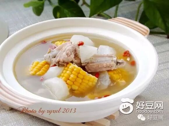 5.一小时后放入萝卜和玉米继续煲半小时。