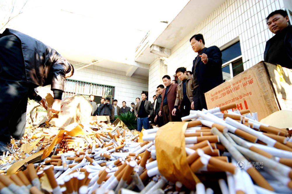 货真价实,童叟无欺,是中国延续了千年的经商道德。而在中国一些地方,诸多造假窝点甚至以村子为单位,把农村作为聚集地,形成造假集群和黑色产业链。图为2004年11月16日,河南省许昌县烟草专卖局在该县公安局的配合下,一天内在同一个村里接连端掉3个制假窝点,执法人员说,他们曾先后三次对该村进行打击,但造假行为仍死灰复燃。