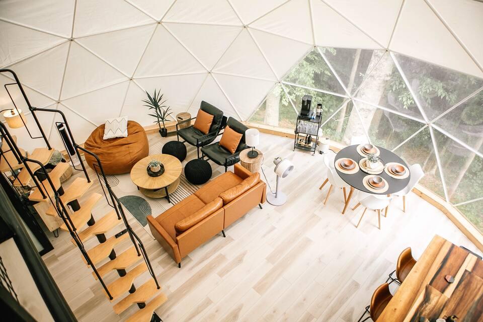 这座圆顶形度假屋隐藏在田纳西州宁静的树林中,拥有世外桃源的氛围和山野与奢华的完美结合,是理想的度假胜地。
