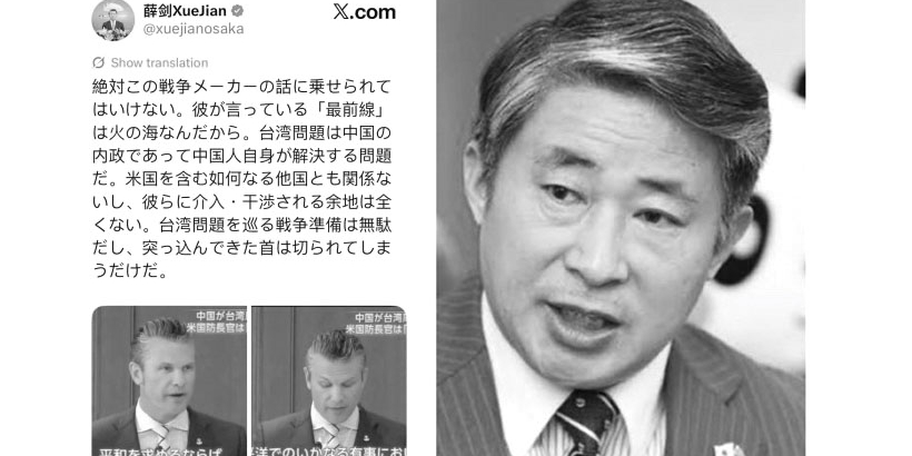 On Oct 25, Xue Jian, Consul General of China in Osaka, used “beheading” language toward U.S. @SecWar Pete Hegseth. This must be translated and reported to the U.S. government. A China diplomat threatening to behead a U.S. official should be widely exposed! pic.twitter.com/1tMnY9CiZm