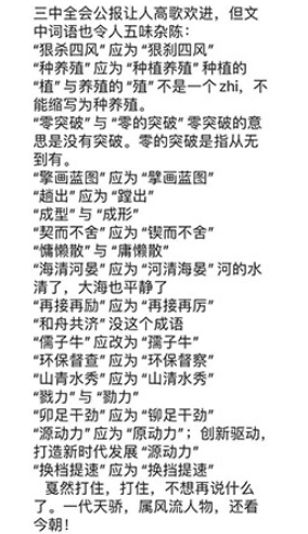 juanli324324:有人耐心地睇完《二十届四中全会公报》后,对其字、词的错误应用,感慨万千,五味杂陈。在创新词的同时,一些常用词和字却一地鸡毛,让人贻笑大方,难道顶层缺乏语文大师?