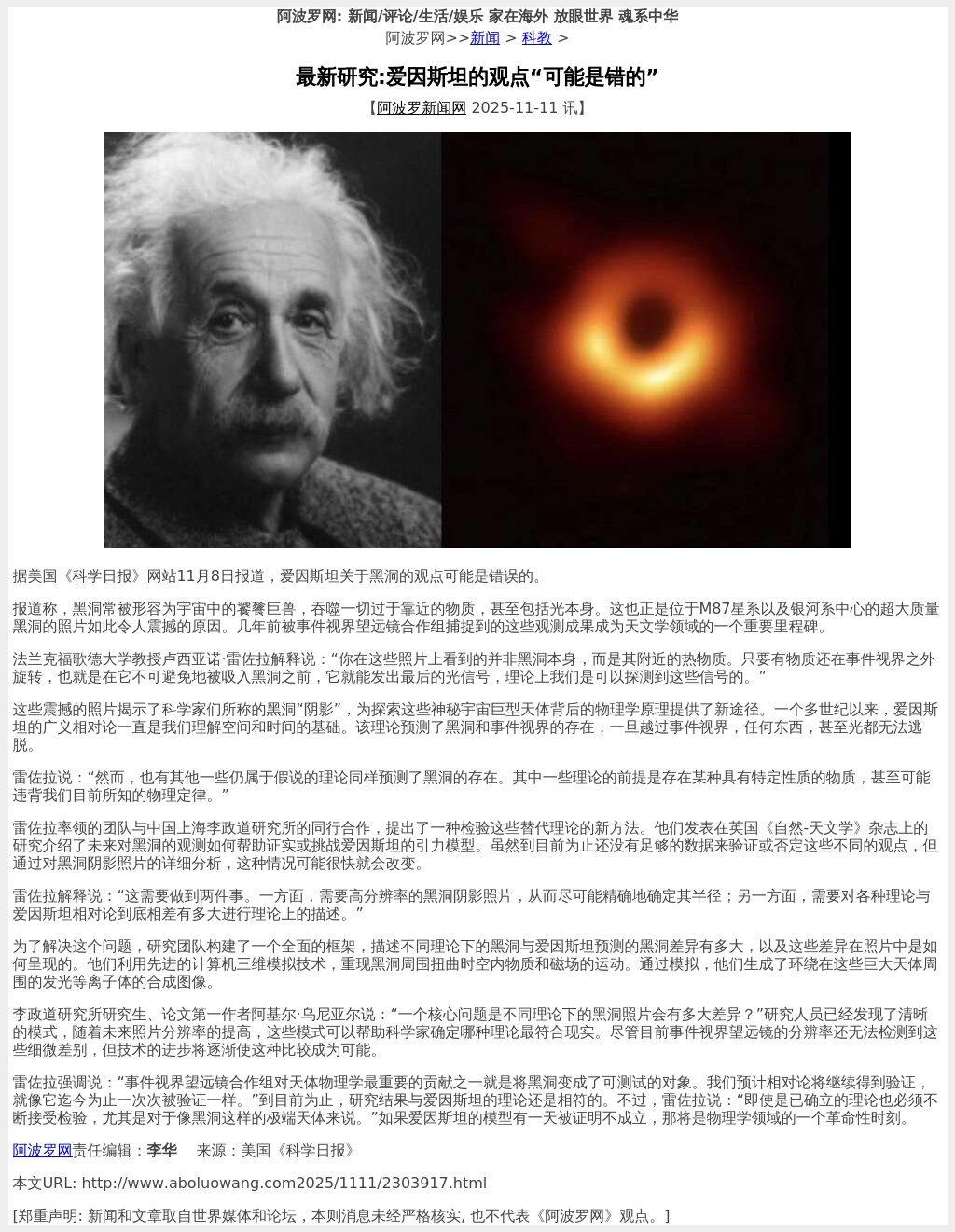 据美国《科学日报》网站11月8日报道,爱因斯坦关于黑洞的观点可能是错误的。