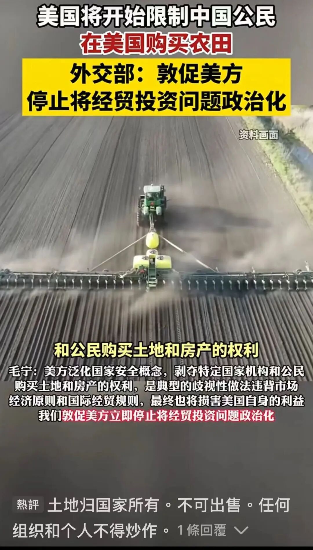 这里有一个令人回味无穷的故事。大约三个月前,媒体报道美国农业部“禁止中国买家购买美国农田”。这就是说,在此之前,中国人不仅可以购买购买美国的房地产,还可以购买美国的农田。