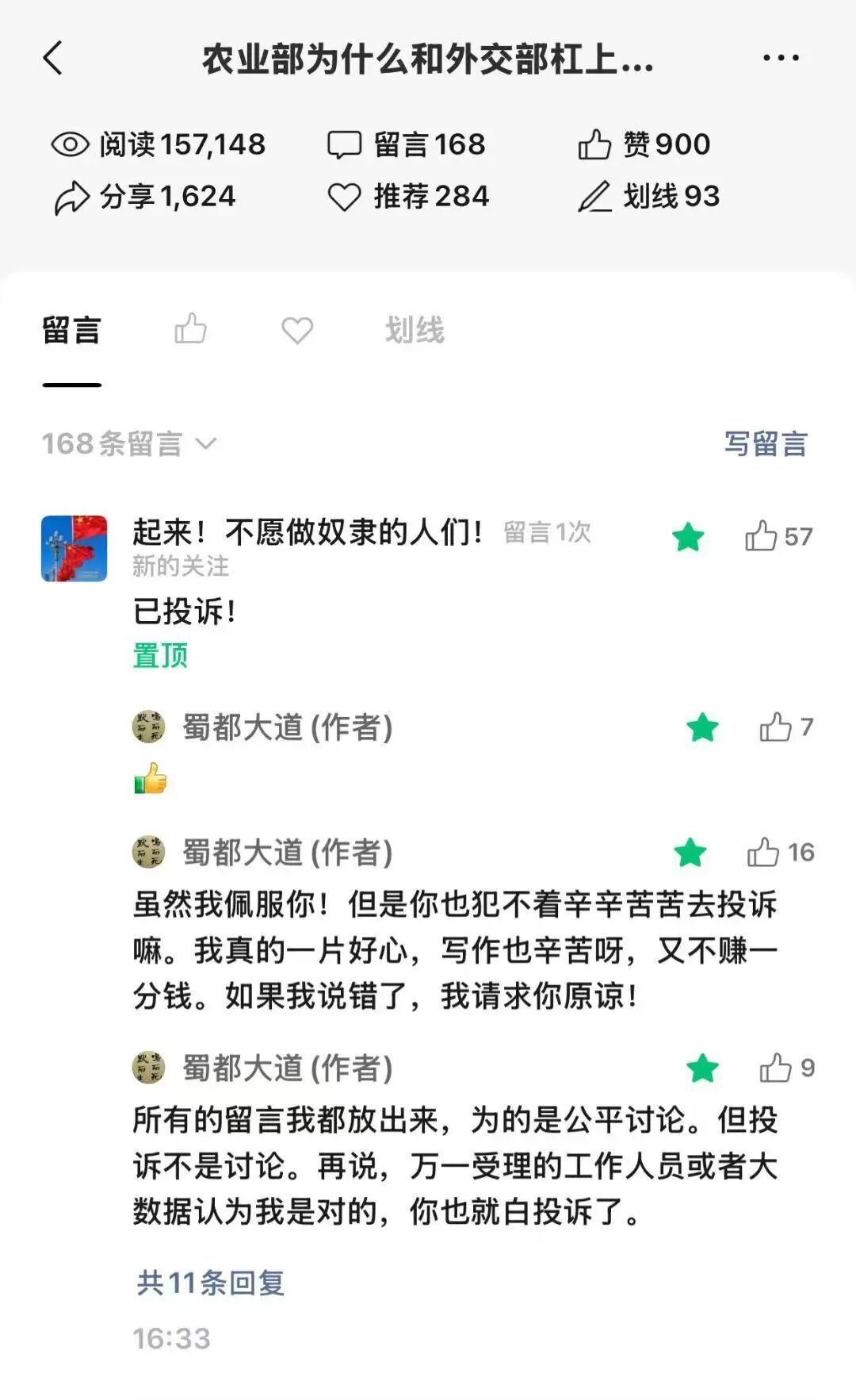 但事先我没有想到的是,这两篇文章,得罪的都是网友。10月4日第一次贴出来,有网友在文后争论,观点对立,其中一位不讲武行德,上来就赠我三个字:“已投诉”。当然,应该还有“投诉”了没有向我报告的。总之,两个小时后文章就“暂时不可查看”了。