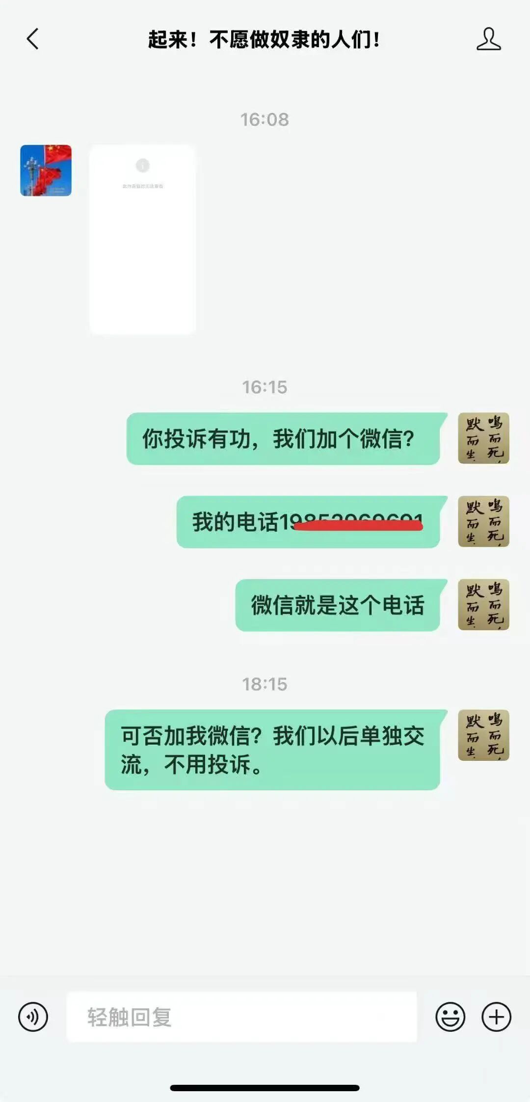 我感觉到,有的朋友,一听说农民可以实质地拥有农村土地产权,就感到义愤填膺,怒不可遏。尤其是一位名叫“起来,不愿做奴隶的人们!”的网友,上来更不打话,只掷我三个字:“已投诉”,我跟他沟通,他也不理睬我,仿佛他的使命就是投诉。