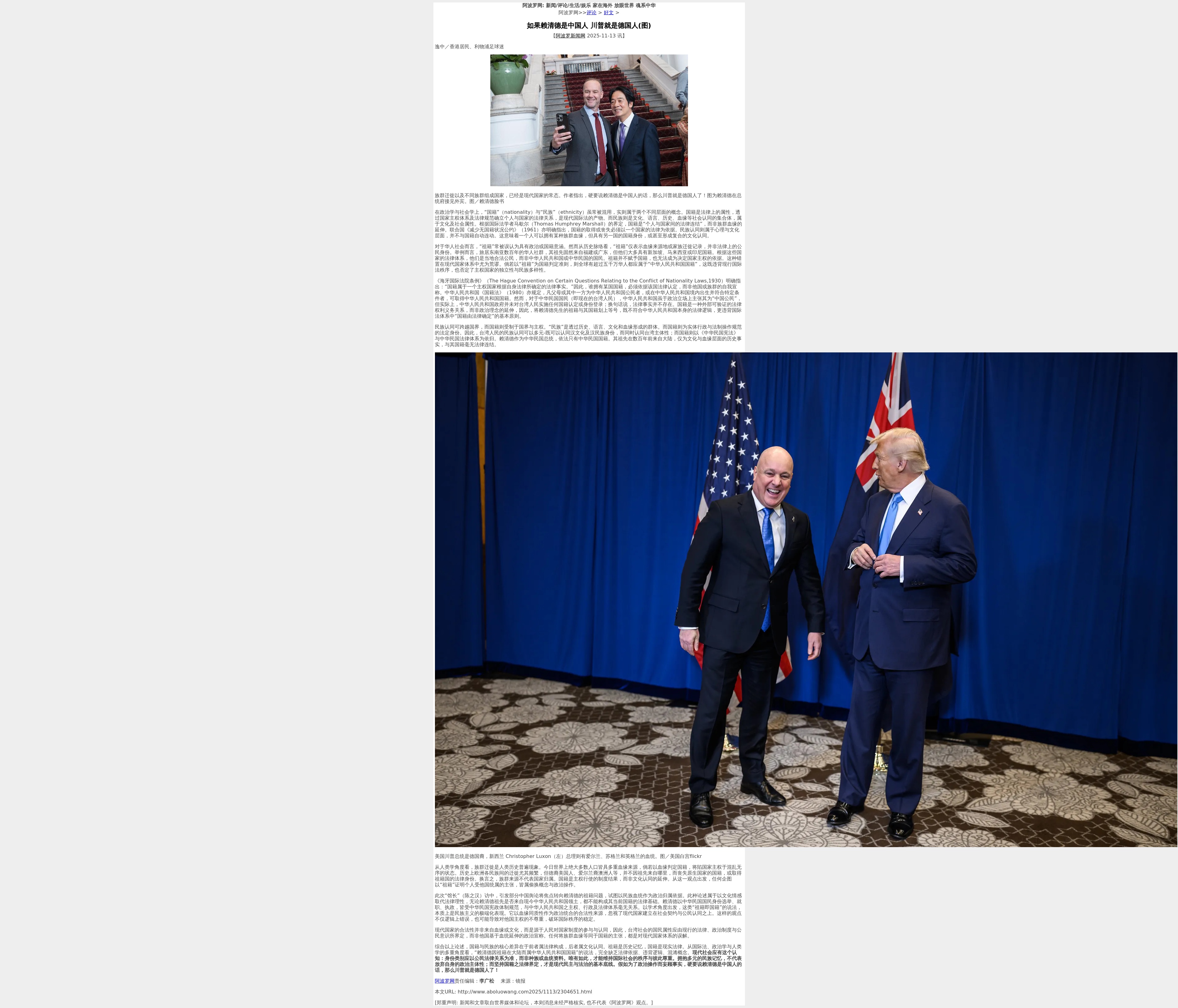综合以上论述,国籍与民族的核心差异在于前者属法律构成,后者属文化认同。祖籍是历史记忆,国籍是现实法律。从国际法、政治学与人类学的多重角度看,“赖清德因祖籍在大陆而属中华人民共和国国籍”的说法,完全缺乏法律依据、违背逻辑、混淆概念。现代社会应有这个认知:身份类别应以公民法律关系为准,而非种族或血统资料。唯有如此,才能维持国际社会的秩序与彼此尊重。拥抱多元的民族记忆,不代表放弃自身的政治主体性;而坚持国籍之法律界定,才是现代民主与法治的基本底线。假如为了政治操作而妄顾事实,硬要说赖清德是中国人的话,那么川普就是德国人了!