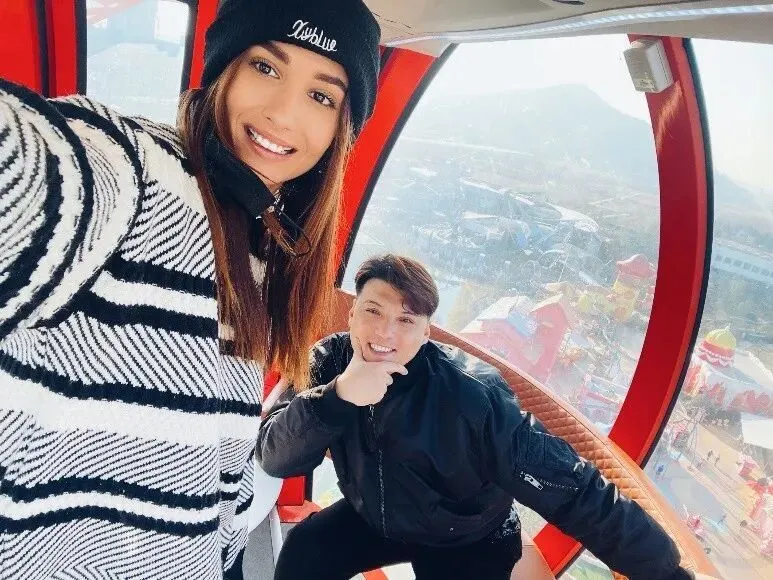 (和老婆在索道上合影)