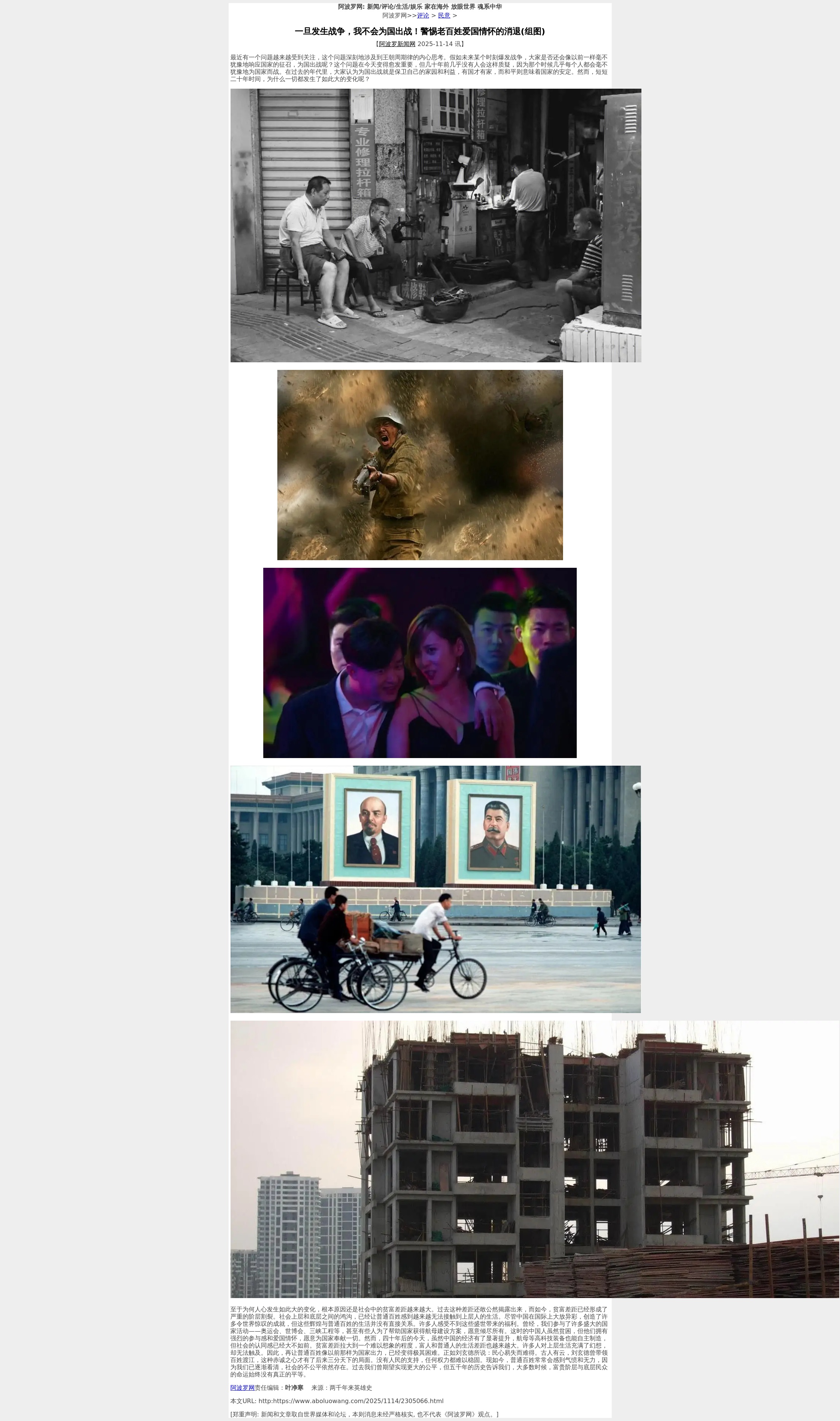 最近有一个问题越来越受到关注,这个问题深刻地涉及到王朝周期律的内心思考。假如未来某个时刻爆发战争,大家是否还会像以前一样毫不犹豫地响应国家的征召,为国出战呢?这个问题在今天变得愈发重要,但几十年前几乎没有人会这样质疑,因为那个时候几乎每个人都会毫不犹豫地为国家而战。在过去的年代里,大家认为为国出战就是保卫自己的家园和利益,有国才有家,而和平则意味着国家的安定。然而,短短二十年时间,为什么一切都发生了如此大的变化呢?