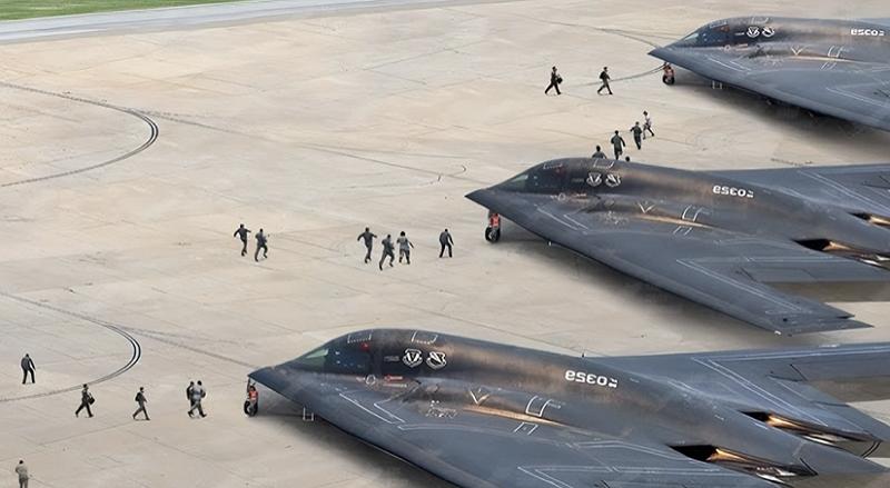 停泊在密苏里州美军怀特曼空军基地(Whiteman Air Force Base)的 B-2 轰炸机。