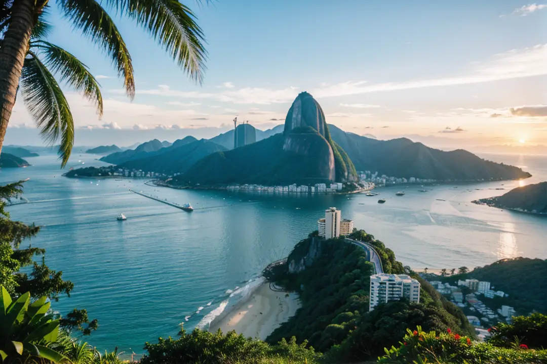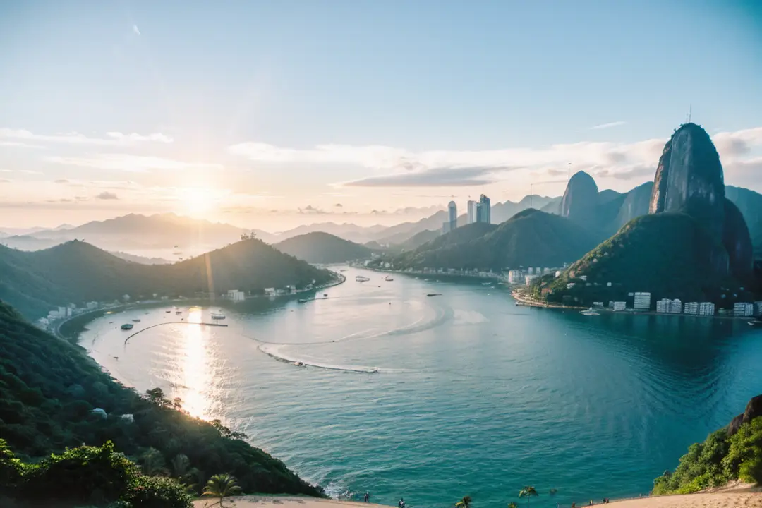 从海滩出发,前往城市内的高地景点如糖面包山。乘坐缆车缓缓上山,远处的海湾、城市、热带丛林尽收眼底。站在山顶,俯瞰里约湾,碧蓝的海水与绿色的山丘交织,岸边的小镇和城市建筑点缀其中,宛如一幅生动的立体画卷。阳光洒在海面上,闪烁着金色光芒,形成动人的景象。