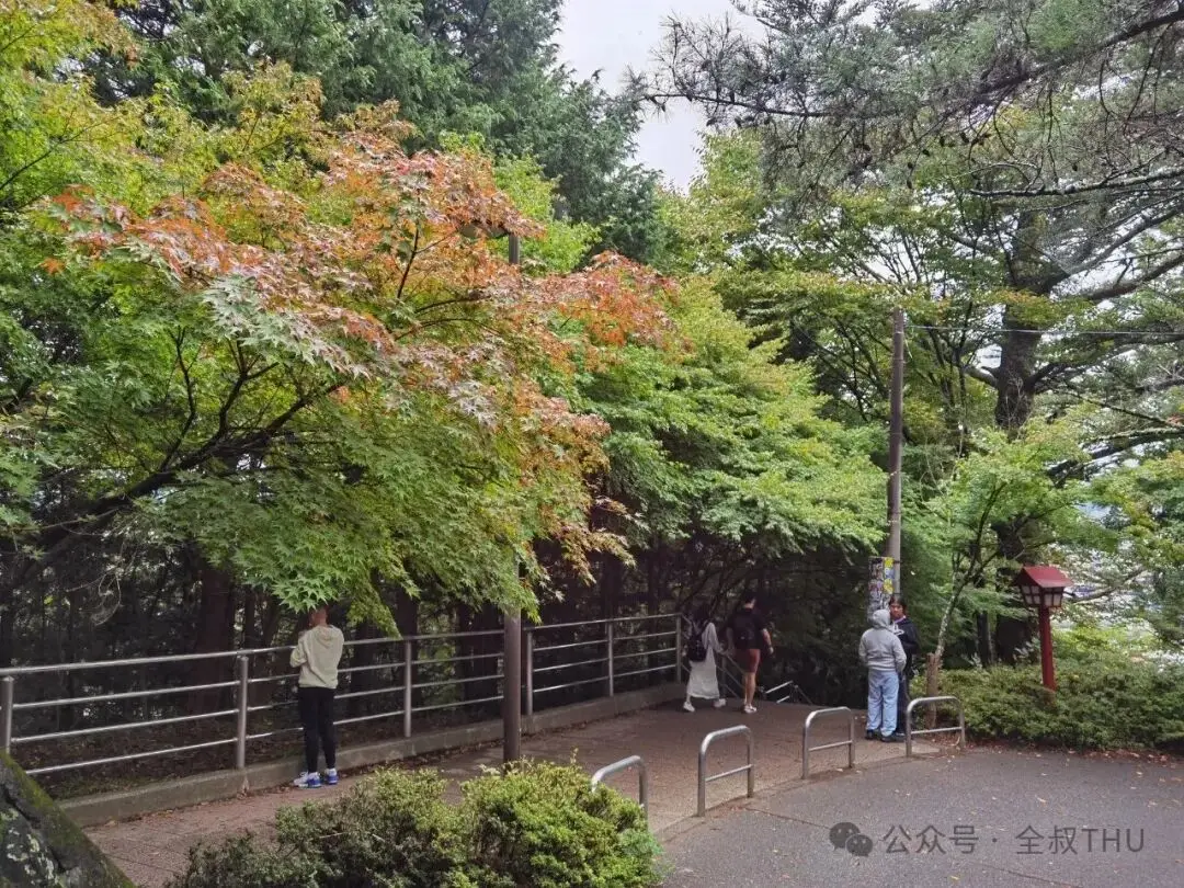沿途的山径,绿幽幽的,空气清新。几处枫叶,开始有变红的迹象。待到红叶烂漫,天空放晴,富士山配上苍山塔,确实太有画面感了,要不,一路都有瓷砖用彩色铺就了四季的观山美景。
