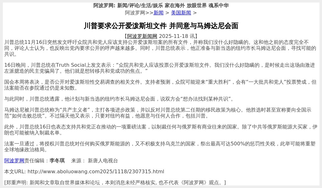 与此同时,川普总统透露,他计划与新当选的纽约市长马姆达尼会面,说双方会“想办法找到某种共识”。