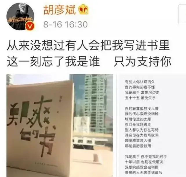 而男方则是感性的表示,“从没想过有人会把我写进书里”,并且发文支持女方。