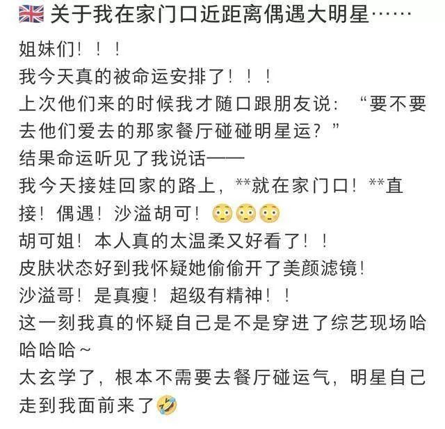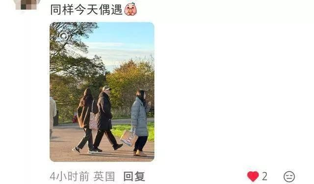 在评论区里,有IP在英国的网友也表示遇到他们了,其中一位网友还分享了照片。仔细看发现,沙溢似乎发现有人在拍他了,眼睛盯着看,胡可则扭头往另外一边看去。