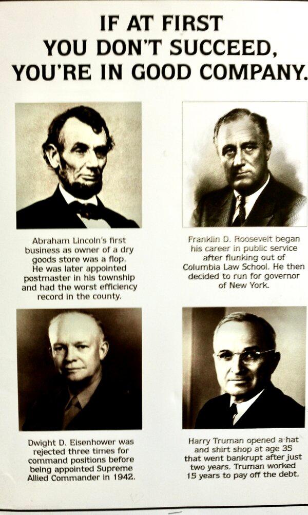 如果你在成长的道路上遭遇失败,你并不孤单。美国历史上,许多成就卓著的总统都在生涯初期遭遇过许多失败。(Courtesy of Kay Rubacek)