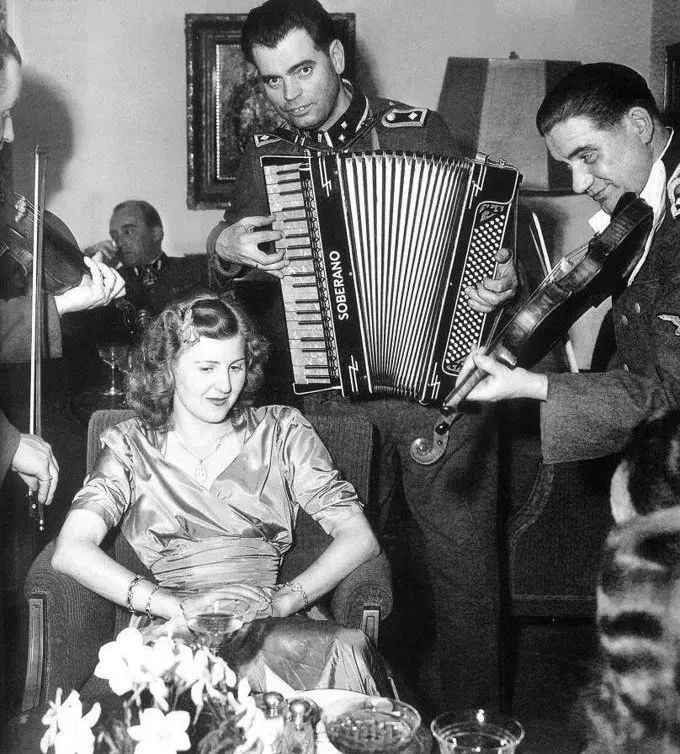 元首地堡内的希特勒情妇爱娃·勃劳恩。这张照片摄于她与希特勒自杀前不久。