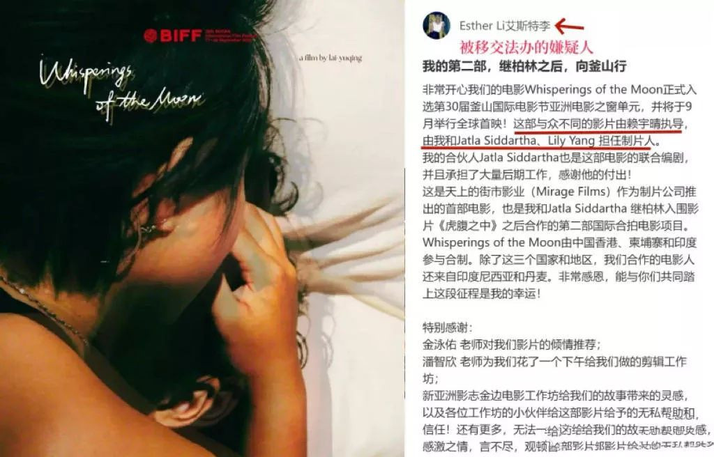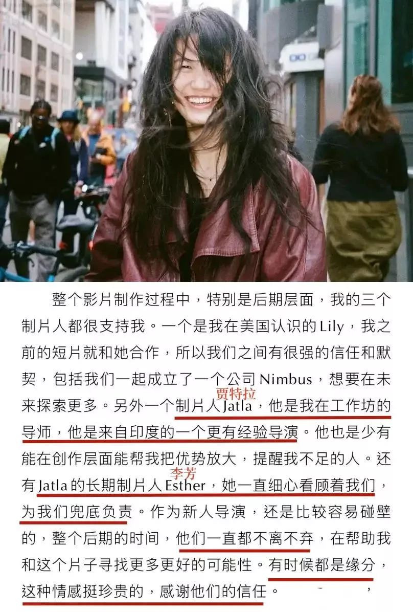 赖宇晴是很温暖的女孩子,她还在电影节上感谢了2位合伙人。LIFANG是贾特拉的长期制片人,赖宇晴应该是先认识了贾特拉、然后又认识了LIFANG。