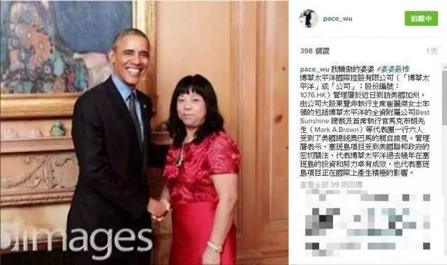 吴佩慈也曾公开吹捧过她,赞她是事业型女强人,获得奥巴马的接见。