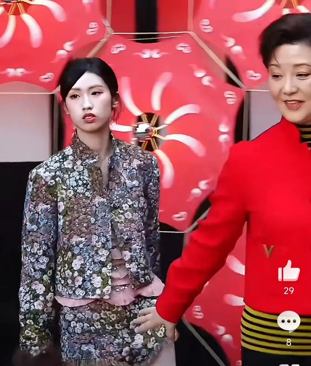 尤其是刚走上明星红毯时,面对媒体记者的镜头,在前面走的徐帆回过头来,想牵起养女徐朵的手,并肩一起给记者们拍照。
