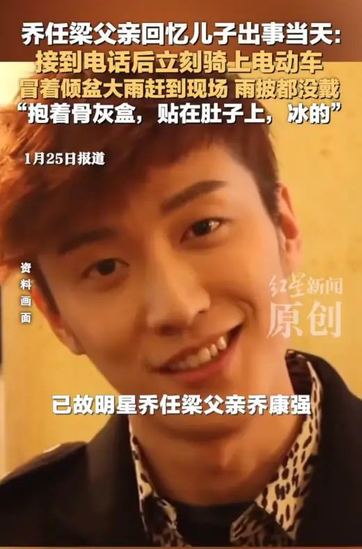 乔康强说,儿子乔任梁从小便聪明伶俐,十分懂事。后来这个被父母捧在手心的孩子以歌手身份正式出道,成了明星。然而最终父母等到的,却是儿子离世的噩耗。乔任梁父亲提及火化后,他手捧着儿子骨灰盒的场景。乔康强:“骨灰盒贴在肚子上冰的。”这是一位父亲此生最痛的时刻,近十年过去,这段记忆依然刻骨铭心。