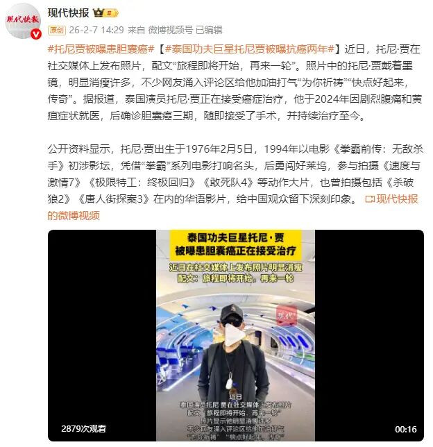 近日,托尼·贾在社交媒体上发布照片,配文“旅程即将开始,再来一轮”。照片中的托尼·贾戴着墨镜,明显消瘦许多,不少网友涌入评论区给他加油打气“为你祈祷”“快点好起来,传奇”。据报道,泰国演员托尼·贾正在接受癌症治疗,他于2024年因剧烈腹痛和黄疸症状就医,后确诊胆囊癌三期,随即接受了手术,并持续治疗至今。