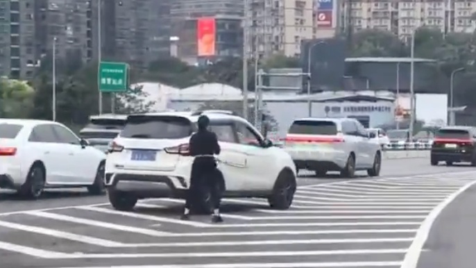 此时,车流量很大,络绎不绝地从女子身旁穿过。女子公开在马路中央健身的举动,令不少过路司机震惊,“这太危险了!”“这可不是健身的地。”