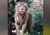 近日,河南郑州银基动物王国的一只公虎因与母虎打架被抓伤鼻子,随后公虎独自站在雨中“生闷气”,迟迟不肯返回笼舍。相关视频引发关注。