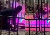 中国黑龙江在本月22日发生一起马戏团意外,在表演途中有一只公狮,不满遭到驯兽师用铁棍对它狠戳,于是当场发狂,直接攻击驯兽师猛咬,让现场众多观众都吓到。