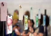 苹果公司在位于美国加利福尼亚州库比蒂诺总部举行的新品发布会上展示 iPhone15和15 Plus机型。(2023年9月13日)在美国科技巨头苹果公司(Apple, Inc.)发布新款iPhone手机之际,中国政府否认禁苹果手机,但称该产品可能存在安全问题。此前,有关中国限制政府...