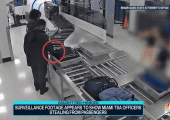 行李中的贵重物品经过安检后不翼而飞?迈阿密国际机场的监控录像显示,在旅客的行李通过安检输送带时,有运输安全管理局(TSA)员工从旅客的行李中顺手牵羊。