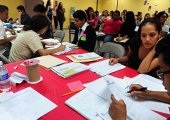 美国德州的一名联邦法官再次裁决DACA计划非法。图为2012年8月15日,在加州洛杉矶,申请参加达卡(DACA)计划的年轻人正在洛杉矶人道移民权利联盟(CHIRLA)的办公室填写表格。(Frederic J. Brown/AFP/GettyImages)美国德克萨斯州的一名联邦法...
