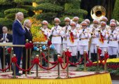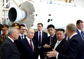 北韩领导人金正恩13日到访俄国东方太空发射场会晤总统普亭。法新社报导,两人先是和代表团成员共同会谈,接著举行一对一会晤,会谈时间约2个小时,结束后两人接著出席为金正恩到访举行的官方晚宴。