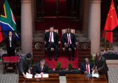 2023年8月22日,中共国家主席习近平与南非总统拉马福萨出席在南非比勒陀利亚联邦大厦举行的两国部长签字仪式。随着美日韩三国联手强化印太地区同盟,中国似乎也在拉拢"全球南方"国家,试图打造制衡西方的力量体系。本周二,中共领导人习近平与南非总统拉马福萨举行会谈,...