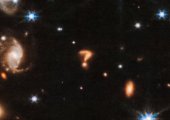 NASA韦伯太空望远镜捕捉到的最新影像中,出现一个闪闪发光的问号形状物体,科学家认为这是两个星系相互碰撞的结果。(图取自twitter.com/esa)国家航空暨太空总署(NASA)韦伯太空望远镜捕捉到的最新影像中,有一张照片的背景中出现一个闪闪发光的问号形状物体,科学家认为这是...