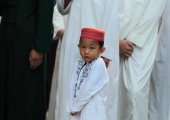 资料照:中国云南省寻甸回族彝族自治县的一座清真寺内一个小男孩参加古尔邦节的晨祷。(2019年8月12日)地处中国西南的云南省一个乡镇的清真寺外周末爆发警民冲突,原因是当地的穆斯林回族信众不满当局强拆该清真寺的穹顶,让清真寺恢复中国式风格,以便将宗教中国化。华盛顿邮报根据传至海外以...