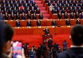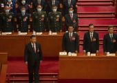 中共领导人习近平今天在中国全国人大会议连任国家主席,毫无悬念地获得全票支持,国际媒体也关注集党政军大权于一身的习近平,英国广播公司放大焦点,关注习近平面前的两个茶杯。