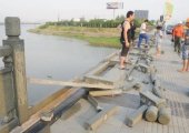 2013年08月18日傍晚,浙江金华,东关大桥东侧近400米石护栏被大风吹倒。不少市民听说此事,纷纷前来一看究竟,大桥的便道上全是破碎物。市民说太不可思议了,大桥如此弱不禁风,戏称“纸做的桥”。