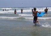 2013年7月31日,美国加利福尼亚州亨廷顿海滩拍摄到的这些物体,但好像没人有注意到它们,这些球体移动太快?或着是人眼根本看不到? (网络图片)