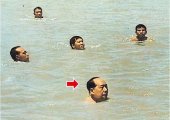 苹果日报/其实曾有当年随从在回忆录披露毛游长江的部份新闻和照片根本是虚构,专家将他在中南海游泳池中游泳的照片,「移形换影」剪接成渡江的照片。罗瑞卿的女儿罗点点也在回忆录中透露,父亲当年50岁还不得不亲自学游泳,因每次毛下水,他都与一排游泳技术非常好的解放军一起拱住四周,保护毛的安全。但在文革后期,毛的身体已经每下愈况。