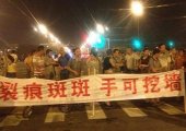 四川省成都市郫县德源镇数百名动迁户,周二(7月16日)堵路抗议获当局配屋的安置房,在大雨后出现裂缝和地基下陷等质量问题,遭大批治安办和黑社会人员暴力驱散,引起上万名动迁户和群众不满,当晚上街举横额示威。(相片由现场人士提供) 四川省成都市一批快将落成的...