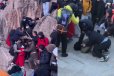 4月25日5时许,山东泰安泰山景区游客为争抢观看日出的最佳位置爆发激烈冲突。过程中,多名游客在无防护的陡峭岩壁上互相推搡,多人从石上滑落,现场相当混乱、惊险。双方起身后继续扭打,场面失控。