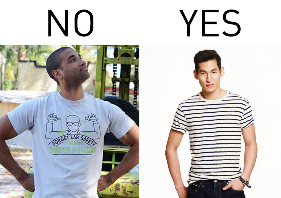 当型男第一件最重要的小事,就是先将衣橱里头宽松变形、脱线、染色、幼稚图案的T-shirt扔掉。