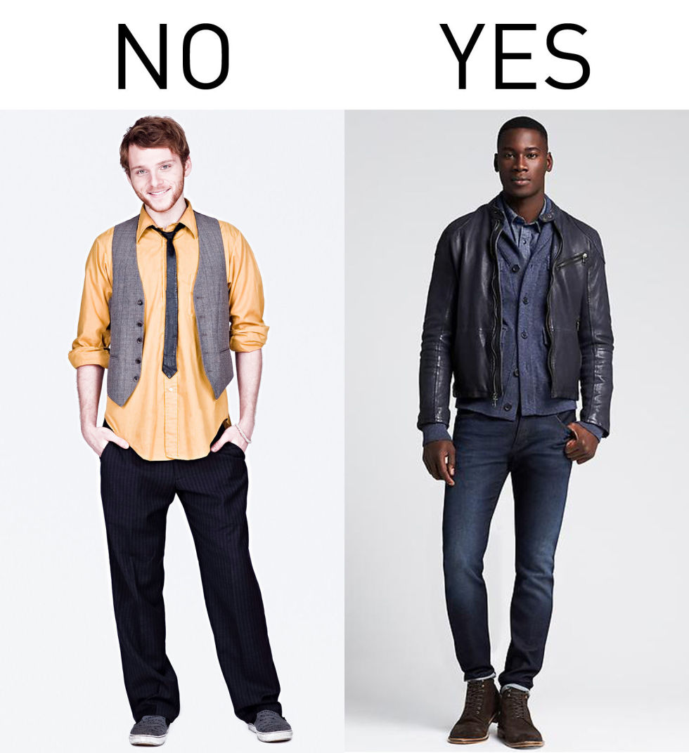 其实男生要穿得有型并不是登天难事,记住一定要保持干净利落,衣服尽量选贴合自己身形的,切忌太过宽松肥大。当然在穿的时候也请不要“太有创意”(如左图所谓的混搭),除非你是搞fashion的设计师或者博主。对于大部分男生还是多翻翻男性时尚杂志,找到适合自己的风格。职场男士可以参考看《智族 GQ》、,走街头新潮路线的则可以看看《Yoho》、《Milk》这类杂志。