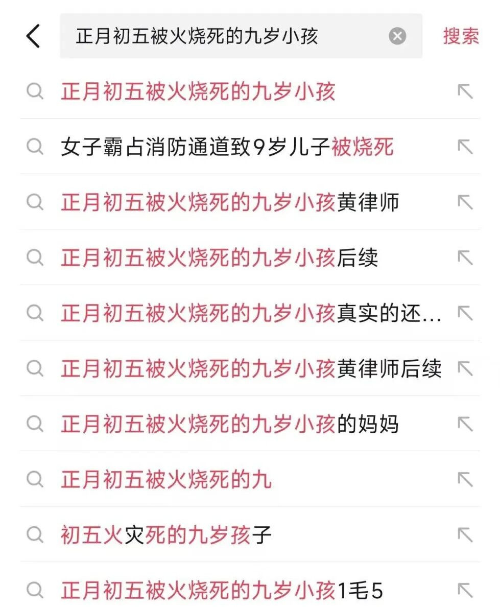 最近,全网都在刷屏一个“正月初五女子霸占消防通道致9岁儿子被火烧死”的新闻。