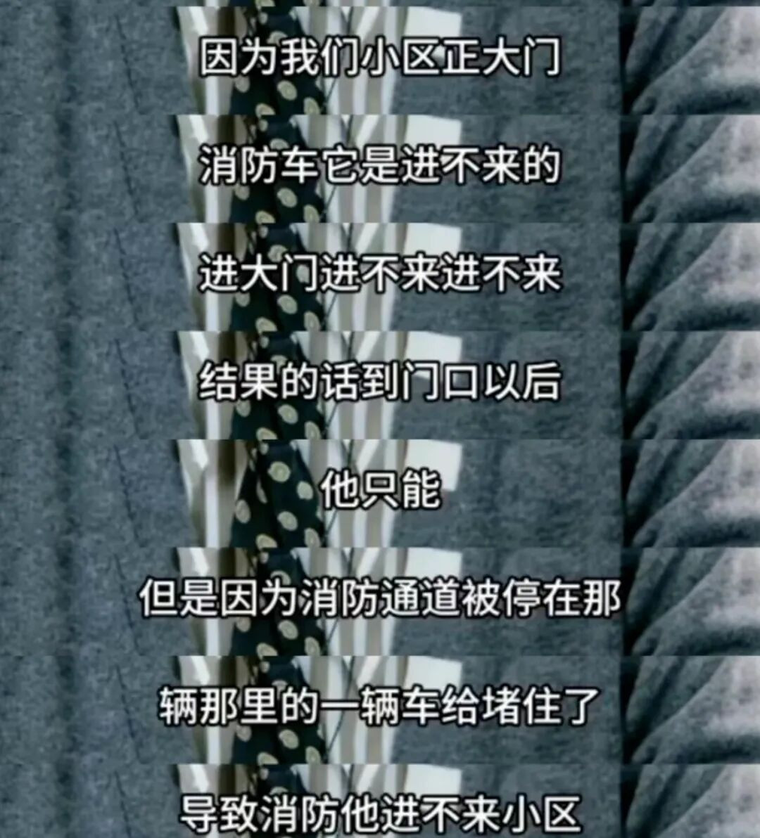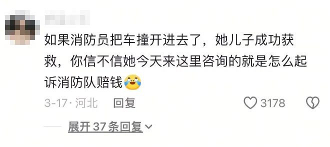 有个网友的评论一针见血:要是消防车开进去了,她来连麦就会问律师怎么让消防队赔偿。