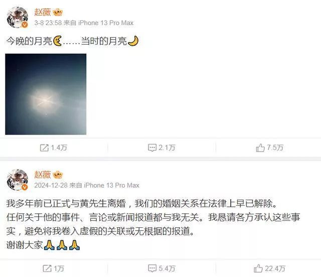 虽然赵薇本人没明说,但种种举动都透着端倪:琼瑶离世前,她的最后一条动态还停留在4年前。