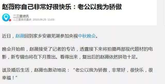 记得以前采访时,赵薇还笑着说,老公以自己为骄傲,婚后生活特别好、特别快乐幸福。